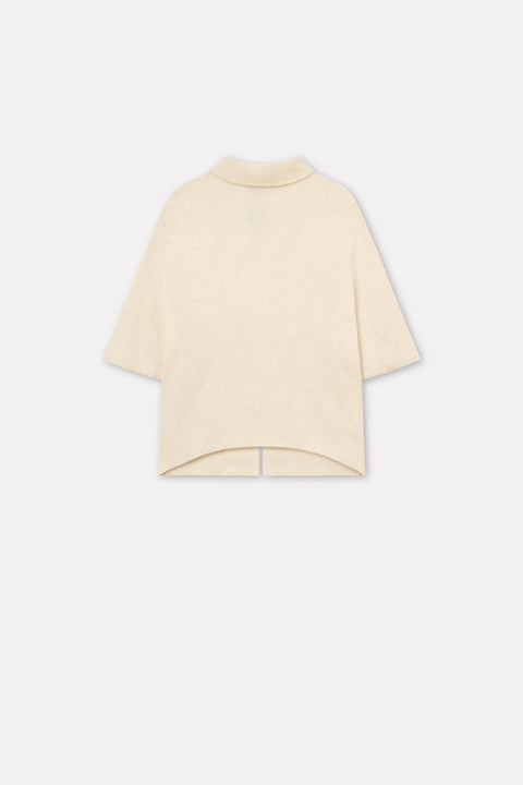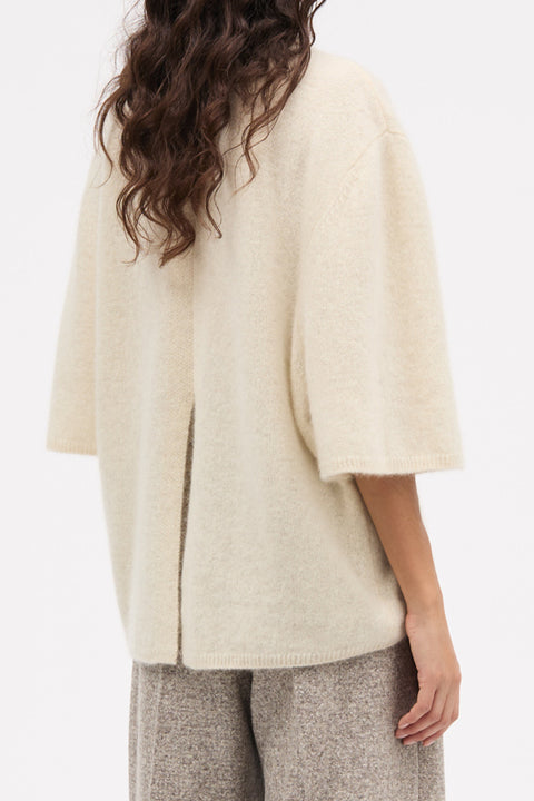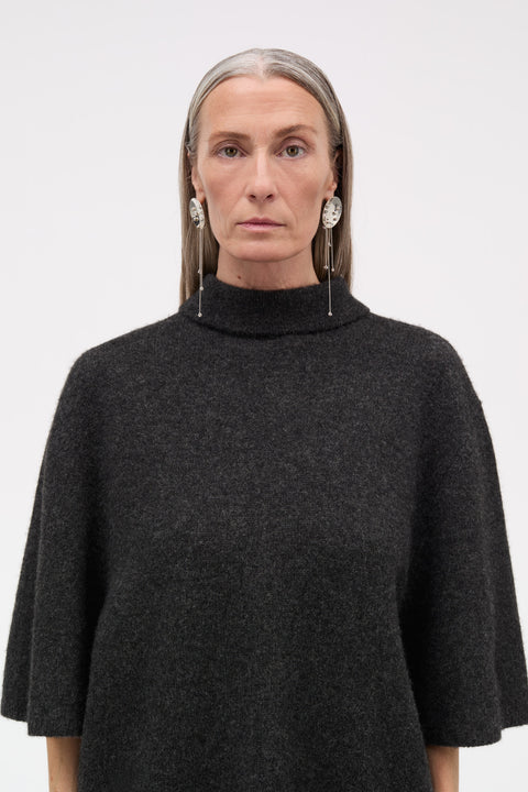 Discover the minimalist luxury of this dark grey melange knitted blouse, featuring bat sleeves and a loose fit.