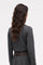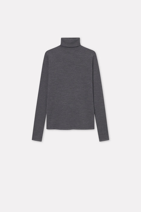 Slim fitted blouse with a high neck and long sleeves, available in black, medium grey melange, and stone.